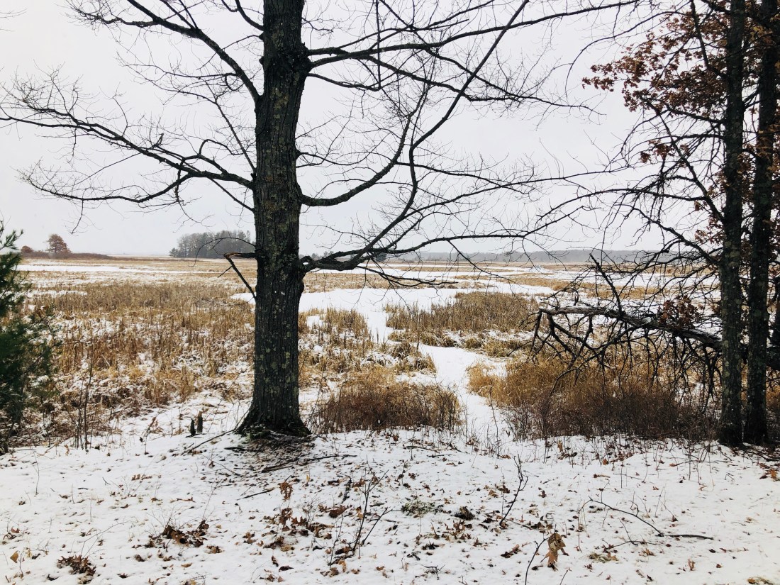 After spending a half-hour exploring the pine grove, I worked my way north along East Refuge Road. If you visit Crex in the winter months, East Refuge is good to check out, because there are nearly always hawks and eagles perched in the trees along the road. Today I saw an eagle, although it was pretty far away so I could not positively identify it even with my binoculars. It was a dark eagle with little to no white on it at all. It could have been a Golden Eagle instead of the usual immature Bald Eagle, but I cannot be sure. Here is why I wish I would have brought my long lens! I did snap some photos with my 18-270 zoom but I doubt they will help much. I also thought of trying a shot with my iPhone through a binocular lens, but when I tried to zoom in the bird took off and flew away. I think I need to spend some time working on this technique.