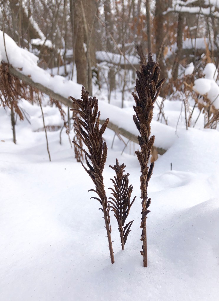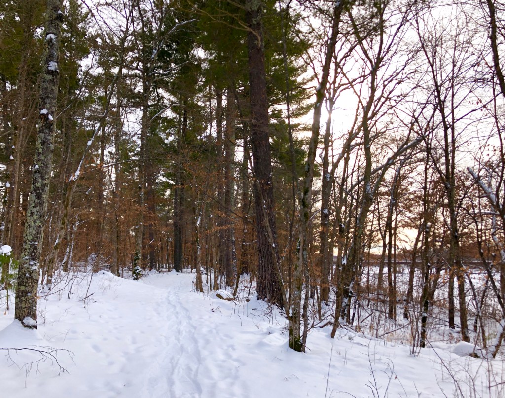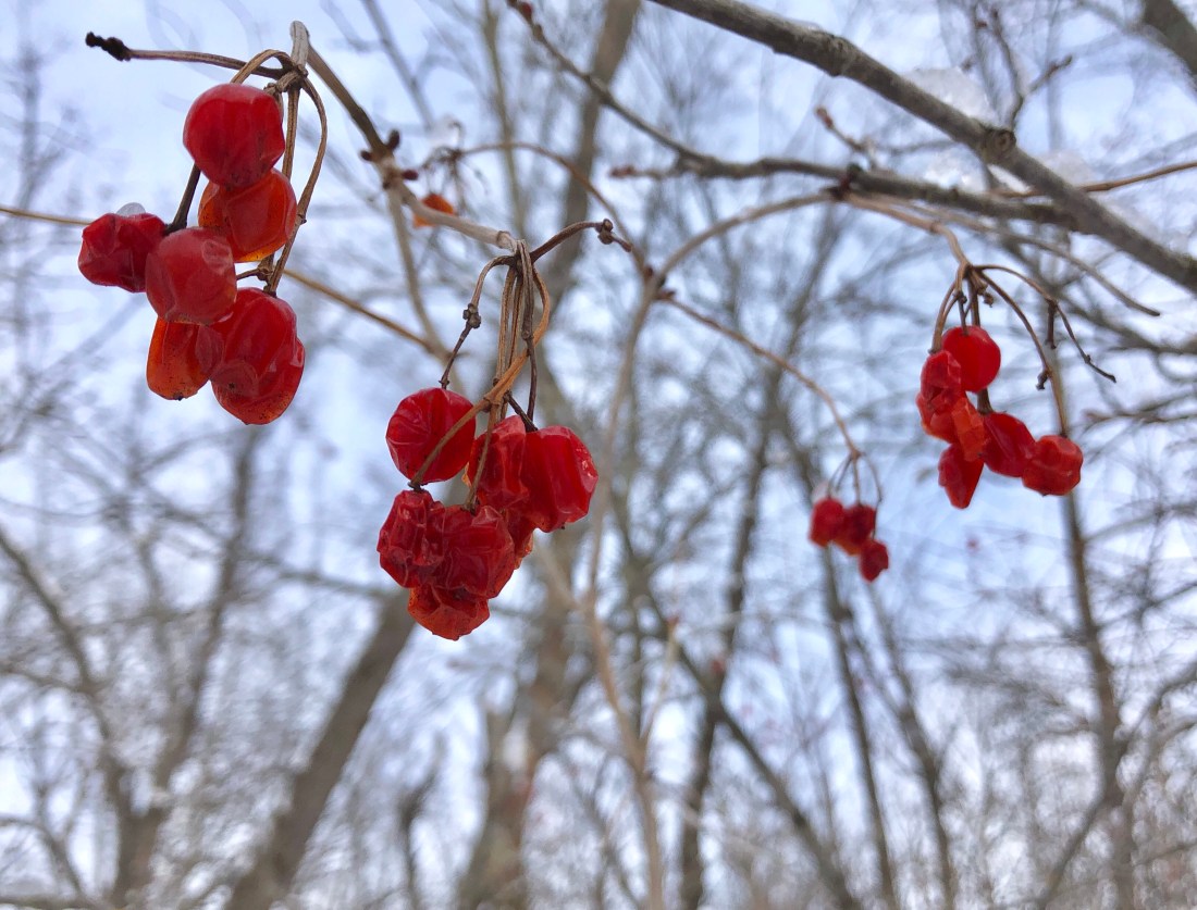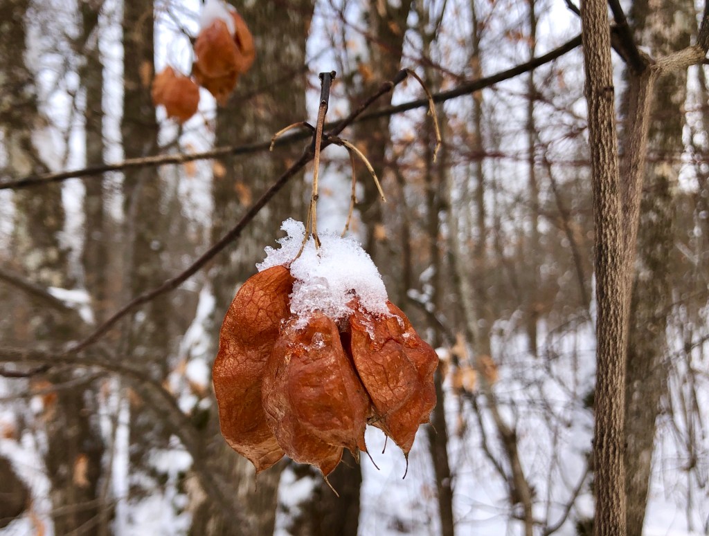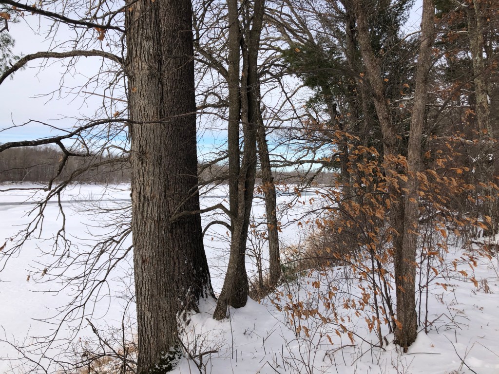 I had to drive over into MN this afternoon and decided to stop at the Sandrock Cliffs hiking trail on my way to do a little snowshoeing. I had to adjust the bindings some after my first adventure with my new snowshoes the other day, and I think I have it figured out now. I cheated and strapped my boots onto the snowshoes at home so all I needed to do was slip my feet into the boots, tighten and tie them, and buckle the top strap over the center of my foot. It worked quite well! Although I’m afraid that if I had to strap the shoes on out in the field with the boots already on my feet it would take a lot more time!