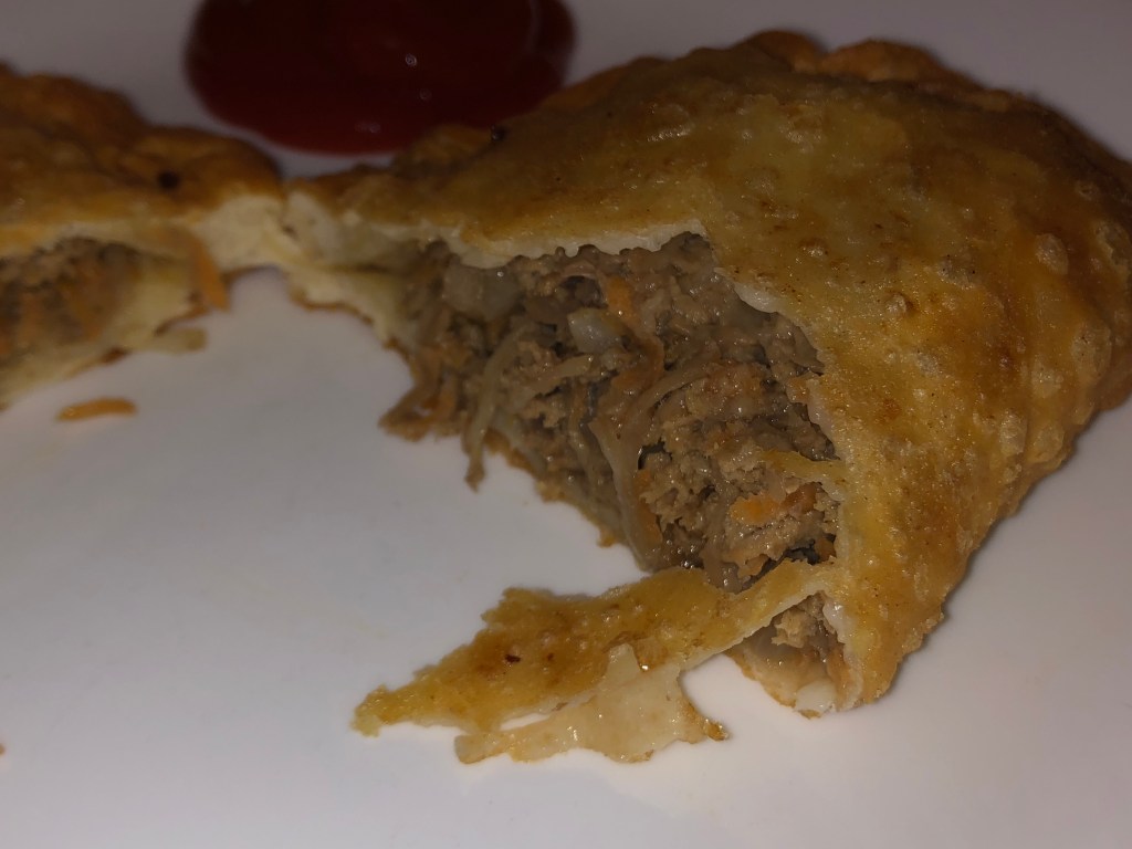 Some recipes I have seen on the internet say to brown the hamburger first, but the correct way to make them is to put the raw burger mixture inside the pastry dough and then fry it long enough to cook the burger through. The traditional recipe also calls for just onion and garlic, salt and pepper. As someone who grew up on Minnesota with meat pasties, full of veggies, this seemed a little foreign to me but it is what it is. I make two versions for my family now, one with just the onion and garlic, and one with shredded carrot and sauerkraut mixed in as well. What’s more German than Sauerkraut? (There used to be a really good pizza place in a town just west of Jamestown that puts sauerkraut on their pizza, just under the cheese – what a good idea that was!)