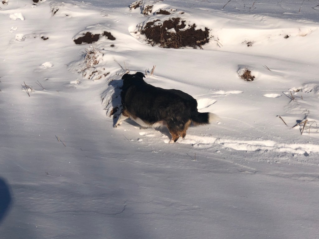 We also found wolf scat (full of hair – likely from a deer carcass. Annie had to pee next to the scat.