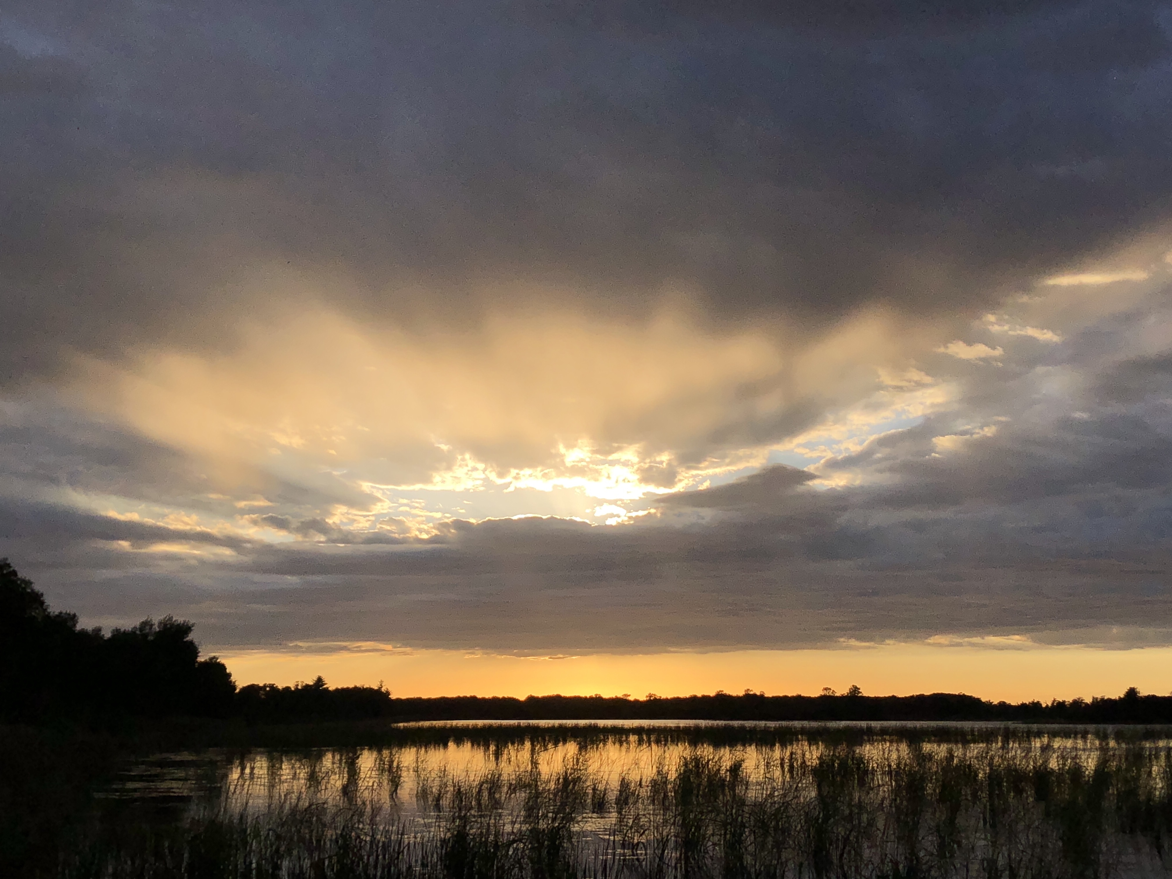 I’ve been out on the wild rice beds near my home in Grantsburg, WI for a few evenings this past week and all day today. The harvest has been pretty good so far, and my partners and I have gathered somewhere around 80 lbs of raw rice through today. Maybe more, but I am not a good judge of the weight and I don’t have a scale. No matter, the best part of gathering wild rice is the camaraderie with my friends and just being out on the water amongst the rice and the lily pads, with nighthawks flying over and sora rails running around nearby.